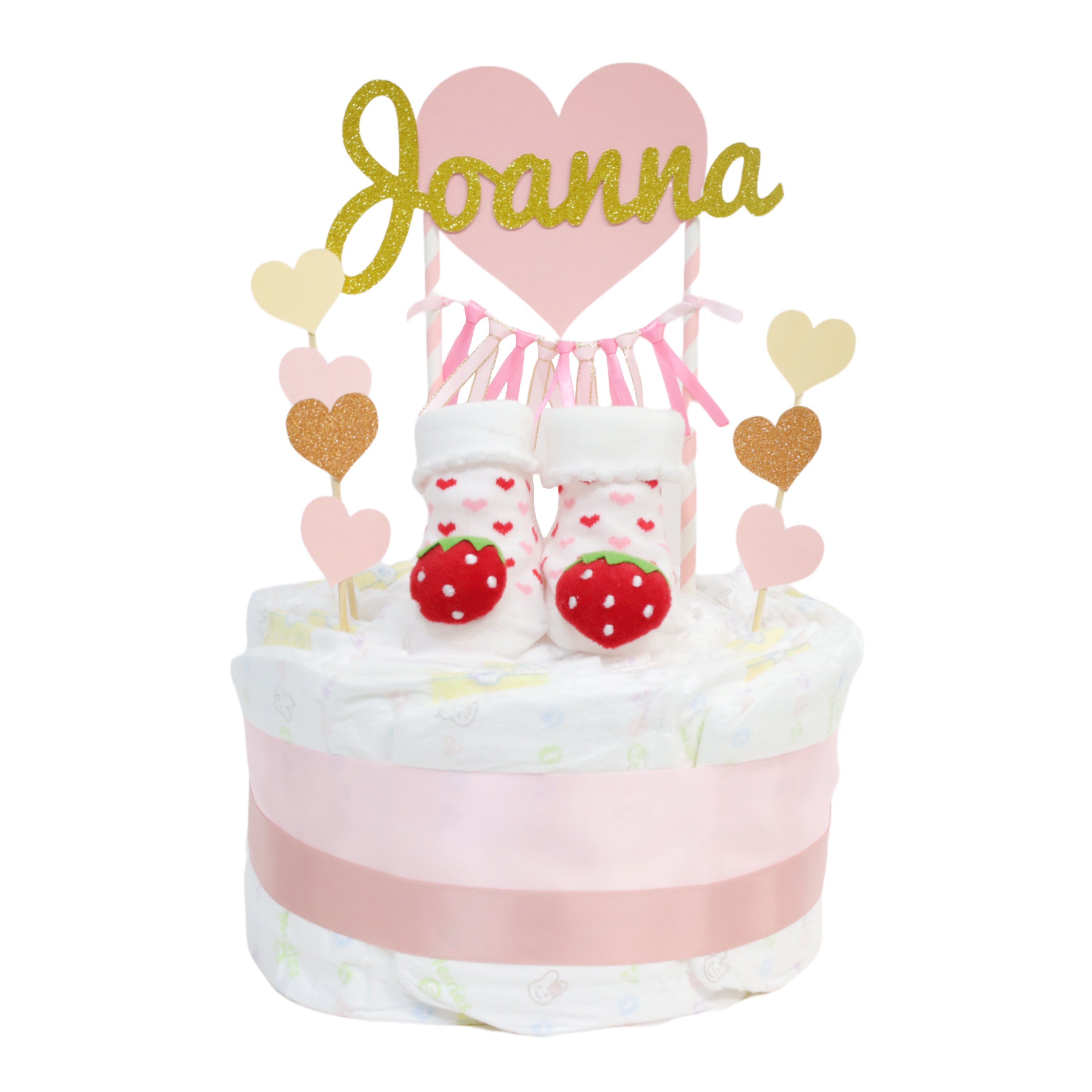 The diaper cake is hand-crafted with medium size Pampers diapers. If another size or diaper brand(Additional HK$80 applies. For order revision, please select OFFLINE PAYMENT as the payment method) is preferred, please leave us a message in the Checkout remarks.